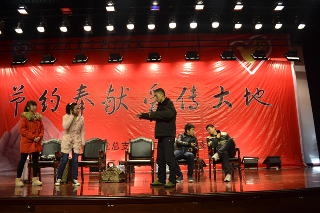 会计系学生在表演小品《我们一起回家》