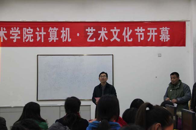 12月12日下午,第一届计算机·艺术文化节开幕式在S1-303隆重举行。学院副院长程淮中、教务处处长沈艾林、副处长王立强、计算机技术与艺术设计系党总支书记蒋淮阳、副主任朱士高、各系团总支书记、计算机系教师代表以及我院各班级学生代表参加了开幕式。开幕式由蒋淮阳书记主持。