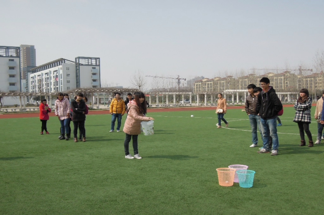 游戏分为掷乒乓球与后仰坠落。掷乒乓球将队友们分为四只小队,在一分钟内看哪小队能够快速又准确的将乒乓球掷入小桶内。一分钟看似渺小却在此时体现了队友们的团结与技术,在欢乐中唤醒了我们平时被忽略的一分钟的重要性;而后仰坠落择更体现同学们之间的信任程度。几个男生将自己的双手织成一张保护网,女生们,你们敢往下仰吗?男生们,你们是否又有勇气接呢?