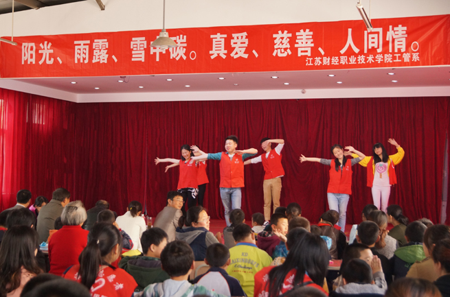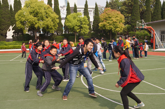 30名大学生志愿者为特校的孩子们带来了精彩的文艺演出。舞蹈《爸爸去哪儿》、武术、双截棍、手语操表演,一个个精彩纷呈的节目深深地吸引着特校的孩子们。随后,特校的孩子们和志愿者们组队进行了一场篮球友谊赛,并开展了“老鹰捉小鸡”、“拔河”等游戏互动。活动结束后,志愿者们借助纸笔和学习一些简单的手语,与孩子们进行了心灵的交流。