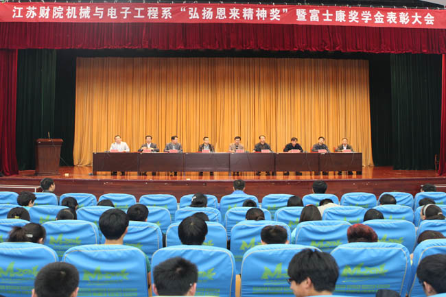 4月23日下午,机械与电子工程系“弘扬恩来精神奖”暨富士康奖学金表彰大会在学院图书馆550人报告厅举行。学院副院长程淮中、校企合作办主任梁从平、系主任唐义锋、富士康集团人力资源部课长陶跃、系副主任徐建高、周忠旺、何振华等出席表彰大会。大会由系党总支书记严纲同志主持。