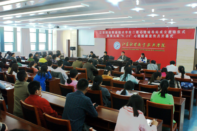 学生处处长刘其生首先宣读了《关于印发(江苏财经职业技术学院大学生二级心理辅导站建设意见)的通知》,并对此次的心理健康宣传月提出两点建议:一是加强队伍建设,坚持团队化管理。2009年初,我院会计系党团组织专门开辟了会计职业训练实训室和心理咨询室。同时,在各班级设立心里委员,对心理委员进行上岗培训,将心理委员的职责定位为“自我成长,时刻关注,积极宣传,准确预警。”连续三年在学院“525”心理健康教育月中取得了优秀心理健康团队的荣誉称号;二是创新教育模式,坚持项目化运作。心理健康知识普及项目化;阳光心态、感恩励志活动项目化;体验式心理健康教育项目化这些一系列项目化的活动无不体现着会计系对心理辅导站的重视。也是这些项目化的活动引导帮助大学生塑造阳光心态,做一名学会感恩的阳光青年。会计系辅导员袁飞对会计系的心理健康工作作了汇报。