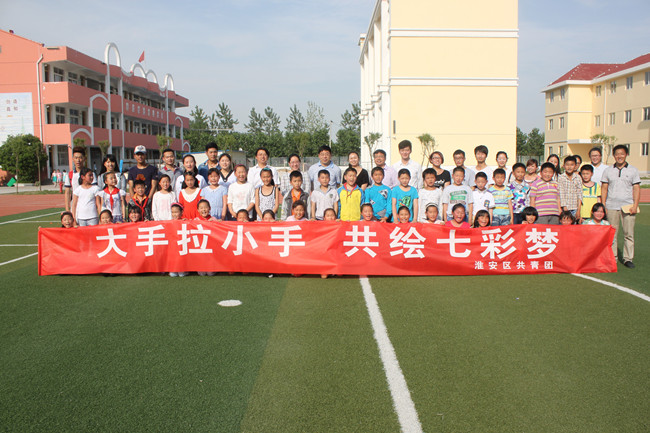 5月28日,经济贸易系携手共青团淮安区委在端午、“六一”双节来临前,来到淮安区南闸镇中心小学“希望来吧”开展“大手拉小手 共绘七彩梦”共建结对活动,和孩子们一起庆祝节日的到来。经济贸易系党总支书记顾正祥、学院团委书记朱绍勇、团淮安区委副书记丁辰莹出席活动。