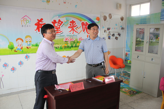 在共建结对仪式上,“希望来吧”的老师首先为参与活动的领导和志愿者们介绍了希望来吧的基本情况、功能设置、活动开展等内容。接着由学院团委书记朱绍勇和淮安团区委副书记丁辰莹为志愿服务基地揭牌,经贸系与南闸中心小学签订了《共建志愿者服务基地协议书》,标志着两家单位结对共建志愿服务关系的正式建立。