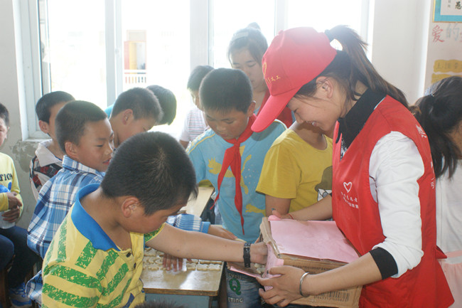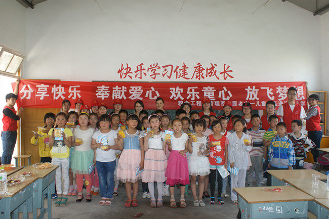院关工委周成霞老师、系食品营养与检测教研室姚妙爱老师以及辅导员柏嫱老师为孩子们送去了课外书籍、学习用品、体育用品、奶油蛋糕,志愿者们准备了糖果、饼干、气球等小礼物作为奖励,开展各种小游戏,如老鹰捉小鸡、猜谜语、投篮球等;活动中,孩子们都玩得很开心,脸上挂着汗珠,积极地参与,每一项游戏前都排着长长的队伍,似乎连太阳公公也被活动热烈的气氛所感染,总露出明亮的笑脸,不愿躲进云层休息半刻。