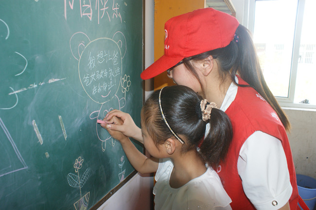 活动现场,孩子们与志愿者和面、擀面,一起做饼干,志愿者们还带去了模拟烤箱,为孩子们耐心讲解制作流程。另一边的志愿者们与孩子们一起绘制“六一儿童节”主题黑板报,“我希望爸爸妈妈永远在我的身边”,“爸爸妈妈我永远爱你们”,孩子们在主题板报上写下了自己的心愿。