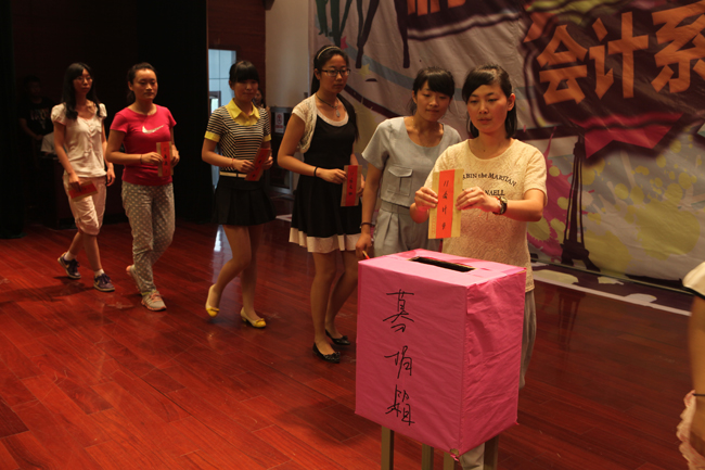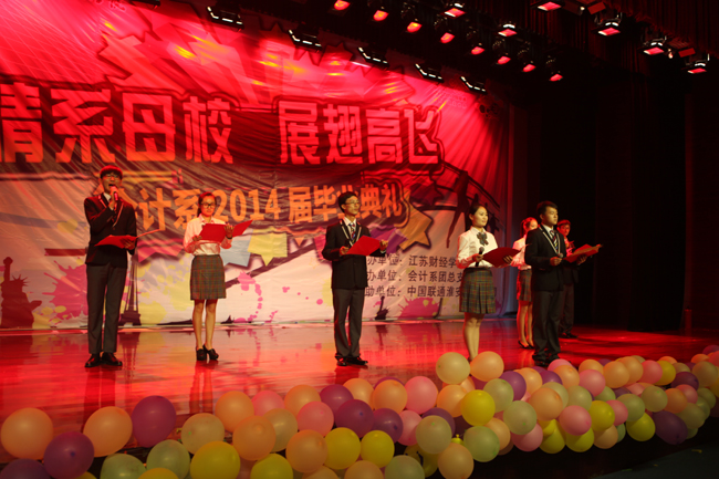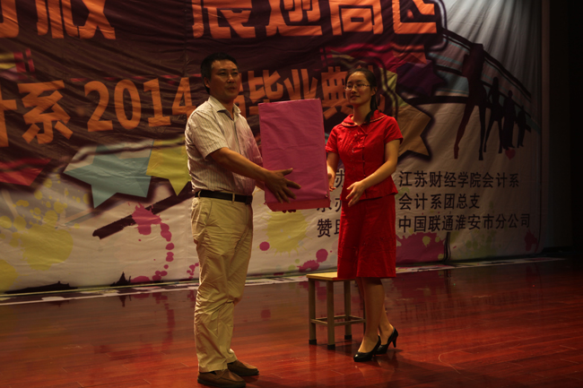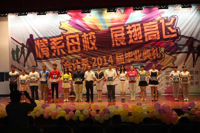 典礼中,会计系副主任孔德军和李群为2014届优秀毕业生代表颁发了优秀毕业生证书。为了感谢母校的培养,会计系2014届毕业班为爱心基金社捐资达11000余元,学工部部长刘其生代表爱心基金社非常感谢毕业生的爱心捐助。为了祝愿学长学姐在未来的日子里,人生出彩、幸福快乐,学弟学妹为毕业生表演了精彩文艺节目。陶雪等人表演了快板《会计风彩》、夏威等人表演了诗朗诵《六月的告白》、杨一坤等人表演了歌舞《致青春》。一句句话语,一首首歌声,道出了毕业生三年大学生活的点点,许多人感动得热泪盈眶。