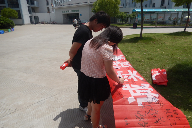 5月28日中午,我系在二食堂门口举行“感恩助学·诚实贷款·诚信还款”资助诚信教育主题签名活动,同学们在宣传横幅上慎重的签下自己的名字,以表示要做一个诚信守信的人。