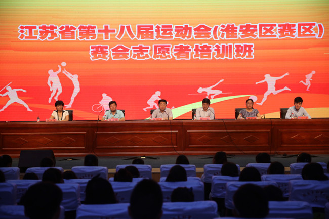 在培训班开班仪式上,周恩来红军小学校长管晓蓉代表周恩来红军小学致欢迎辞。经济贸易系学院赵建洁同学作为志愿者代表作了表态发言。区体育局局长王永明向与会志愿者介绍了省运会的基本情况以及淮安区赛事的筹备情况。团区委副书记丁辰莹对淮安区赛会志愿者的招募、培训和管理工作作了详细说明,区委常委、宣传部长于明星最后作了动员讲话,他指出,高素质的志愿者队伍和高水平的志愿服务,是举办一届成功而精彩的省运会的重要保证,是展示淮安对外形象的生动名片。希望志愿者们珍惜培训机会,认真学习、深入领会、学以致用,全面提升服务本领;切实增强责任感和使命感,弘扬“奉献、友爱、互助、进步”的志愿者精神。