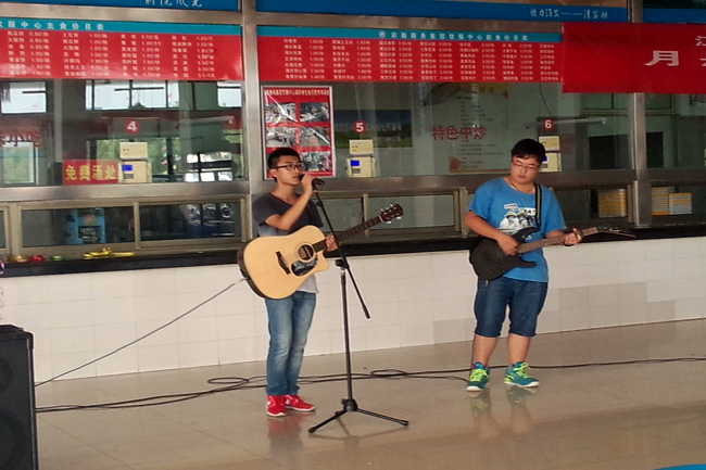 会计学院杨金章等同学在表演吉他弹唱《斑马斑马》