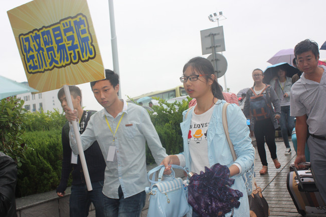 天空下着淅淅沥沥的小雨,校园里却忙得热火朝天。身着红、黄服饰的志愿者们撑着伞提着大包小包穿梭在财院各个角落。9月12日——新生正式报到的第一天,经贸学院细心准备,迎新工作有条不紊进行。新生接待处设在我校图书馆地下一层,接待来自四面八方的学子们,我院院长笪建军、党总支书记姚炳明亲临现场指导迎新工作。参加迎新的还有团总支书记林森,辅导员杨艳、侍海及班主任老师。