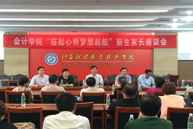 10点左右,新生家长座谈会在学院图书馆110人报告厅举行,座谈会由会计学院团总支书记许龙成主持。会前,新生家长和会计学院师生一起观看了学院历史的宣传片,对学院的发展情况有了更加深入的了解。座谈会上,学院校长程淮中首先代表学院领导班子致辞,向各位新生家长及学生来学院学习深造表示热烈欢迎,他说,淮安是一个人杰地灵的地方,江苏财经职业技术学院是一所在省内有位置、国内有影响的学院,尤其是会计学院是整个学院的龙头,不论在省内还是在全国都拥有重要影响力。接着,会计学院院长张卫平向各位家长介绍了会计学院近年来的发展状况,重点介绍了会计学院的专业设置、教学科研、师资力量、学生管理等各项工作的基本情况以及会计系人才培养特色和整体规划。在会上,针对家长提出的问题,会计学院党总支书记闾维健现场作了详细的解答,并对如何有效地实施家庭、学校、社会育人三结合提出了具体的意见和建议,希望通过学校教育、家庭引导和孩子自身的共同努力,让新生尽快适应大学生活,热爱自己所学的专业,成为德、智、体、美全面发展的优秀人才。
