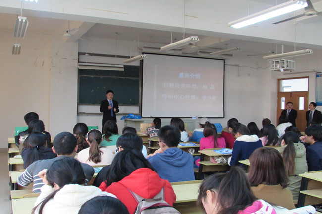招聘会开始,由侍海老师对学生就职情况进行了分析,指出目前学生就业选择方面存在的一些误区。其后由信诺保险公司招聘培训经理杨晟介绍了什么是“金融业”和“保险”,并通过对当今社会时事的分析,介绍了保险行业的发展前景和“招商银行”,让同学们对保险行业有了一些了解。杨经理还对毕业生们进行了提问,同学们都积极思考,踊跃发言,现场气氛热烈。呼叫中心经理李少敏就企业培训工作、员工薪资构成、岗位要求及发展、法定福利与公司福利等内容进行了详细介绍,并向同学们抛出了橄榄枝。毕业生们仔细思量、分析利弊,对该公司有意向的同学们纷纷对保险行业的市场需求和未来走向等提出了自己的问题,李经理也一一为同学们解答,给同学们充分的考虑时间,并表示欢迎同学们毕业之后来公司面试实习。