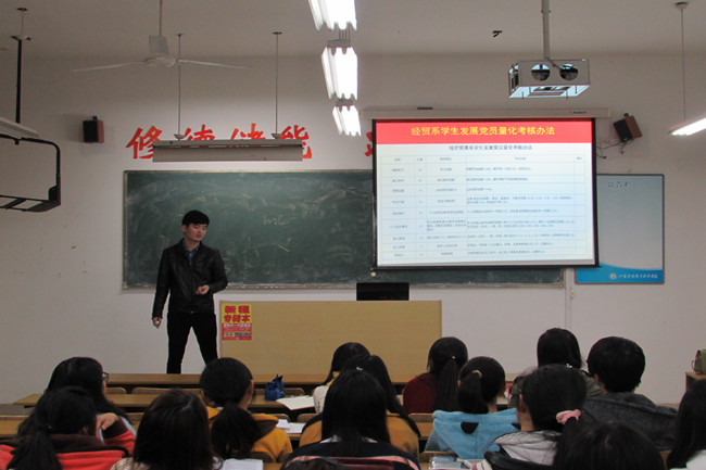 11月4日晚18:00,我院第13期入党积子培训班第四讲在JB108举行,我院四十余名入党积极分子参加了此次培训,由团总支书记林森给学员们讲解发展党员的流程和要求。
