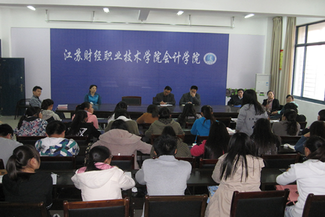 为了解2014级新生入学后的学习生活情况,会计学院于11月6日下午四点在会计学院会议室召开了2014级新生学委及学生代表座谈会,来自33个班级近50名学生代表和孔院长、罗书记及教研室主任一起参加了会议。会上,学生代表踊跃发言,对校园生活、教学、课外活动等方面提出许多问题及建议。孔院长边听边记,并不时询问相关细节。座谈会上师生畅所欲言、坦诚交流、气氛融洽。