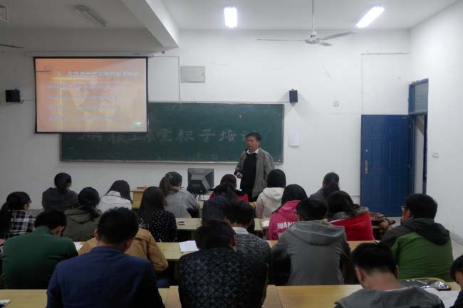 11月11日下午,在S5-417,粮食工程与管理系主任顾鹏程教授为系入党积极分子培训班的学员作了《如何做一名合格的共产党员》的专题讲座。