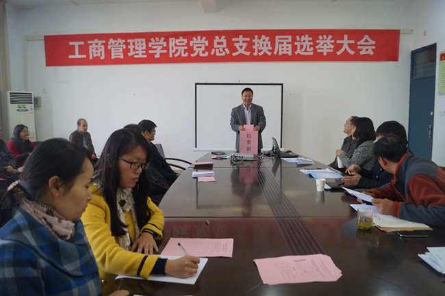 根据学校党委《关于认真做好党总支换届选举工作的通知》精神,工商管理学院党总支在前期充分筹备并报学校党委批复同意的基础上,11月12日下午在学院会议室召开全体党员大会,进行党总支换届选举工作。学校副校长杜萍到会指导,大会由学院党总支书记严纲主持。