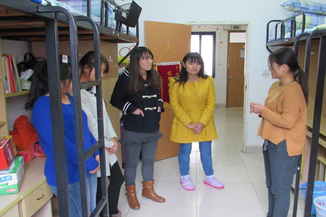 来到女生宿舍,自管会主席方佩针对女生之间相互攀比的现象与大家谈心,说道:“衣着光鲜并不代表一个人有多美,心灵的高尚才是美的体现,我们还是一名学生,主要的任务还是学习。”同学们纷纷表示,会提高自己的思想政治觉悟,共创一个和谐向上的宿舍环境。生活部同学针对如今大学生男女宿舍纠纷特拍摄两片简短的思想教育短片,经过剪辑后将会和同学们共同学习。为共建一个团结友爱,文明卫生,遵纪守法的公寓环境打下了坚实的基础。
