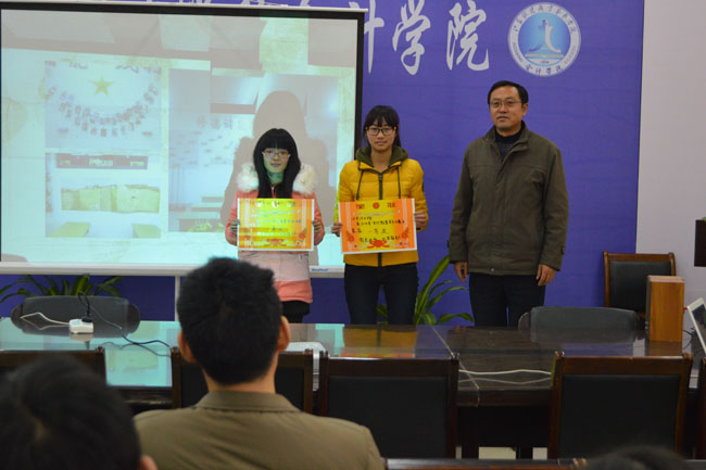 首先辅导员张玉英老师对教室美化大赛进行了工作总结,并宣读了大赛获奖的班级名单。接着,学院党总支书记闾维健、副院长孔德军和党总支副书记罗斌分别为获奖的班级颁发了奖状及奖品。在活动中,学院党总支书记闾维健应邀对教室美化大赛作了点评。他对同学们运用会计、人文、励志等元素来美化教室寝室的做法给予肯定,希望同学们在以后学习生活中,要注重行为养成,加强自我教育和自我管理,不断创造新的佳绩,为班级和学院争光。