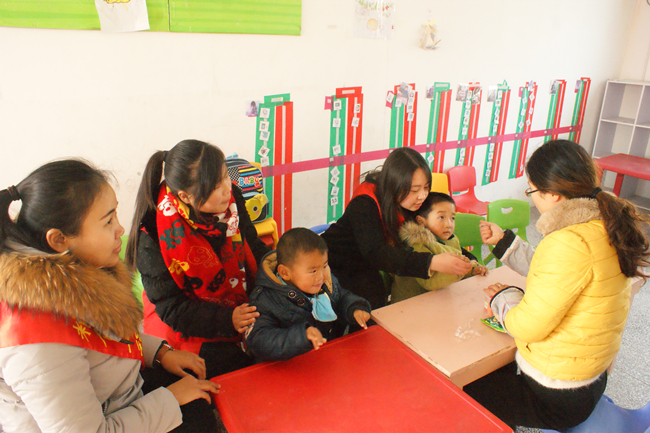 志愿者跟小天使一起上课