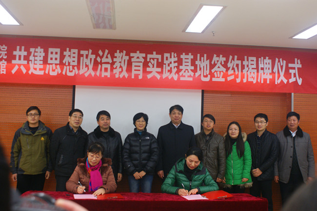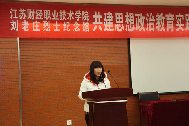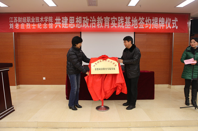 12月13日上午,学校思想政治教育实践基地签约揭牌仪式在刘老庄八十二烈士陵园多功能厅举行。淮阴区副区长张春荣、淮阴区民政局局长裘靖宁、团区委书记高晗、刘老庄村党总支书记朱林、刘老庄八十二烈士陵园管理处主任吴寒玉等淮阴区领导,学校副书记刘芳、思政部党总支部书记顾正祥、思政部副主任邹瑄、学校团委书记朱绍勇、学校宣传部部长助理桑雷及部分思政课教师和学生代表参加本次活动。学校党委副书记刘芳和淮阴区副区长张春荣共同为“江苏财经职业技术学院思想政治教育实践基地”揭牌,思政部副主任邹瑄与八十二烈士陵园管理处主任吴寒玉为实践基地共建签约。