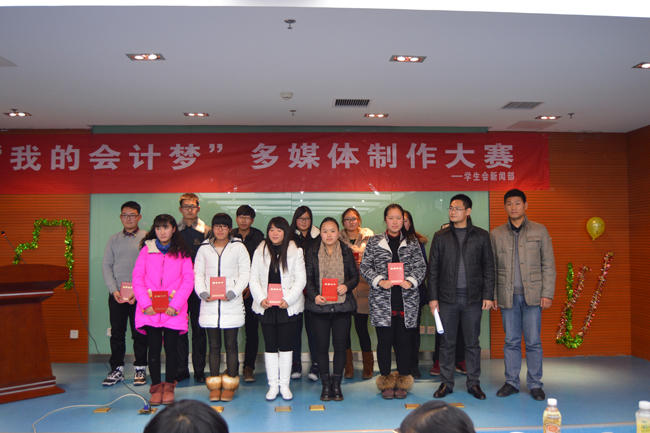 12月17日下午,会计学院在学校220人学术报告厅举行了以“我的会计梦”为主题的多媒体制作大赛。会计学院党总支副书记罗斌、辅导员周学兵、14位参赛选手和相关学生参加了大赛。