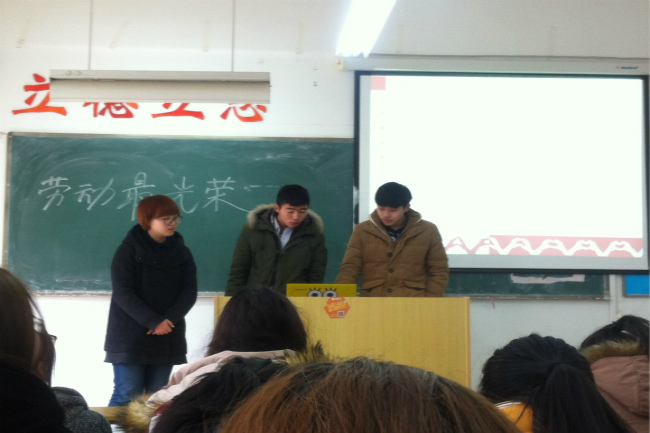 为培养学生良好的劳动习惯,让同学们更好地理解劳动的意义,养成热爱劳动和珍惜劳动成果的良好习惯,近日,人文艺术与法律学院13法律事务班开展了“我劳动、我快乐”主题班会活动,此次班会由陈洪全、丁楠、冯启伦三位同学主持。