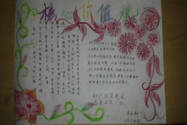 为进一步提高广大学生的文明素养,构建文明和谐校园,引导学生对 “社会主义核心价值观”深入理解与学习,学校组织开展了以“践行社会主义核心价值观”为主题的手抄报、漫画比赛活动。