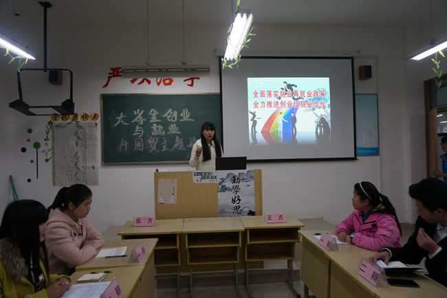 班会开始,杨老师就“创业好”还是“就业好”向同学们抛出问题,引发同学们对今后职业规划的思考。随后,一场关于毕业后就业还是创业的辩论赛正式拉开帷幕。双方就“就业好还创业好”的问题展开辩论。正方认为创业好,而反方以就业好的观点反驳。
