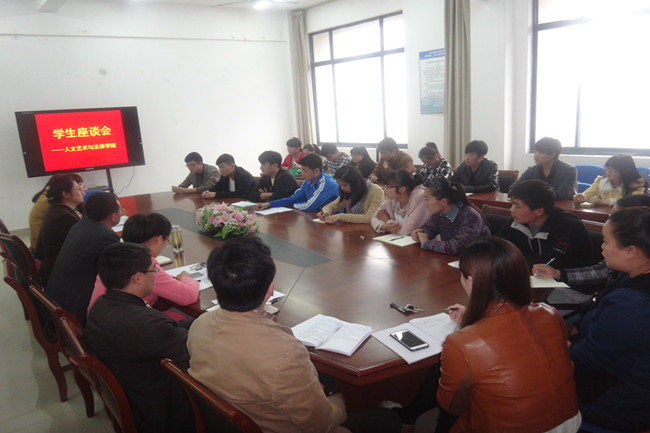 3月31日下午4点,人文艺术与法律学院召开了学院各班级班长、学习委员座谈会,学院党总支书记陈国强,院长张晓红,副院长刘锦翠、浦海涛,教研室主任吴军、杨智、张鲁明,教务员姜曼、胡玲等人参加,副院长刘锦翠主持。