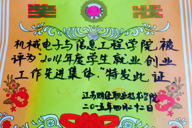 此次机械电子与信息工程学院获评“就业创业工作先进集体”是对我院学生工作的肯定和鼓励,也为日后的就业工作提供了有效指导,积累了有益经验。(李加美)
