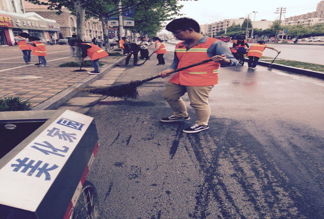 上午九点,在辅导员老师带领下,会计学院师生来到活动地点——富春路。前来一起参加活动的还有来自淮师的大学生。在环卫工人来到后,会计学院师生便开始了工作分工,有的负责骑环卫车,有的负责扫人行道,有的负责扫非机动车道,还有的负责清除堆积在一起的垃圾。会计学院师生热情高涨,打扫认真负责,在一旁负责指导的环卫工人看到会计学院师生干得这么卖力,都露出了欣慰的笑容。