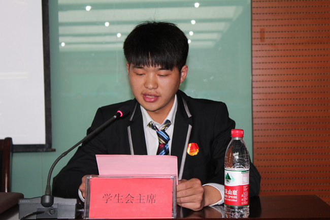 伴随着《国歌》奏唱完毕,杨艳老师宣布大会正式开始。随后,我院团总支代表杨艳老师、学生会代表纪宝山就经贸学院以往的工作情况作了工作汇报。工作汇报围绕“求真务实,开拓进取,勇挑重担,改革创新”十六个字,认真总结经验,为以后的工作做好充分的计划和组织,完善各项规章制度,加大考核力度,真正实现“能者上,平者让,庸者下”的工作方法,以广大同学切身利益为出发点开展各项工作。
