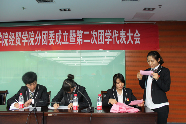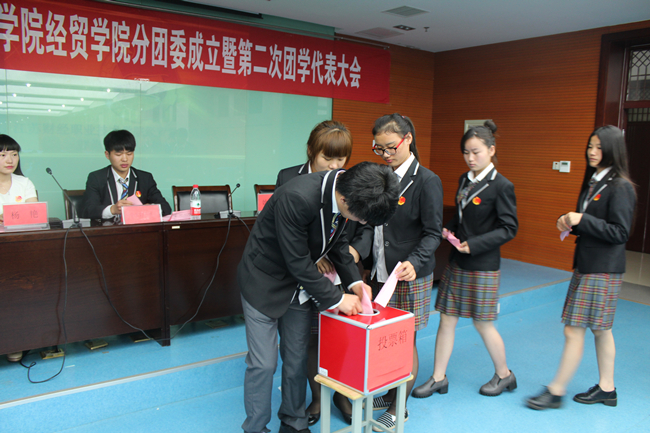 随后,我院举行了第二次团学代表大会。大会上,经贸院分团委听取、审议并通过了经贸学院团总支与学生会的工作报告。通过团学代表们的选举投票,纪宝山、孙义宇等五名同学成为经贸学院分团委委员。
