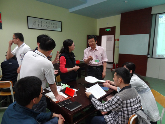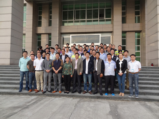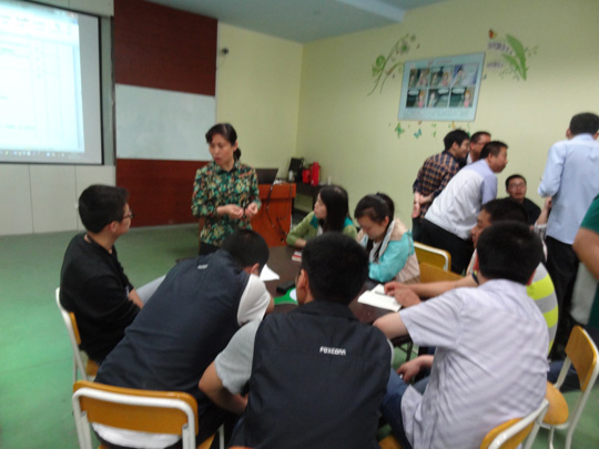 2015年5月23日工商管理学院沙盘模拟企业经营教学团队田青教授、章尧东副院长、高明文主任成功地为富士康科技集团(淮安)72名课长进行了一天8个多小时的管理培训。