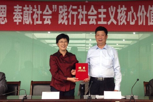 5月22日下午,思政部在图书馆会议室举办“心怀感恩,奉献社会”践行社会主义核心价值观主题报告会暨大学生校外德育导师聘任仪式。会议邀请我校思想政治教育实践基地、淮阴区刘老庄村现任党总支书记朱林和原党总支书记金成明作践行社会主义核心价值观专题报告。我校党委副书记、纪委书记刘芳,思政部党总支书记顾正祥,思政部副主任(主持)邹瑄,以及200余名师生代表聆听了此次报告。报告会由思政部邹瑄主任主持。