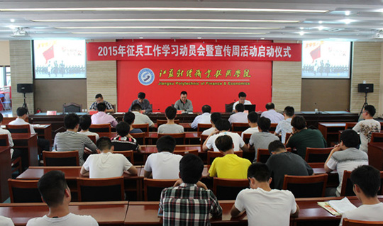 会上,学生处副处长何振华宣读了学校2015年征兵工作实施方案,并就征兵的指导思想、组织领导、宣传引导和工作分工作了详细解读。军事理论教研室主任王素舟介绍了做好征兵工作的注意事项,并就国家征兵时间、入伍基本条件、入伍程序和优惠政策作了认真讲解。我校入伍复学的13会计1班周峰同学以《从军梦 我的梦》为题,作了激动人心的发言。