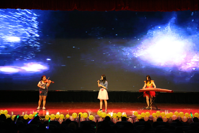 下午三点,在轻快的音乐声中挑战最强音大赛正是开始,大赛分为三轮。第一轮由红蓝两组每队各派出一名选手,两两角逐,经评委举牌评分,票数高者的选手直接进入决赛,其余选手进入复活赛。第二轮是复活赛的选手进行拉票,票数高者进入决赛。第三轮是进入决赛的选手一起争夺最后的奖项。在比赛过程中,选手们各展歌喉,比赛很快就进入了高潮,选手们不仅展示了自己的才艺,还创造出了一幅幅声色兼美的亮丽风景,诠释着青春飞扬的主题,给观众带来一场不同凡响的听觉盛宴。其中孙萌同学的《new divide》、刁齐瑞同学的《你那么爱他》、李奕舟同学的《后来》、骆艺嘉同学的《火》和陈晨同学的《红日》等歌曲都赢得了大家热烈的掌声。