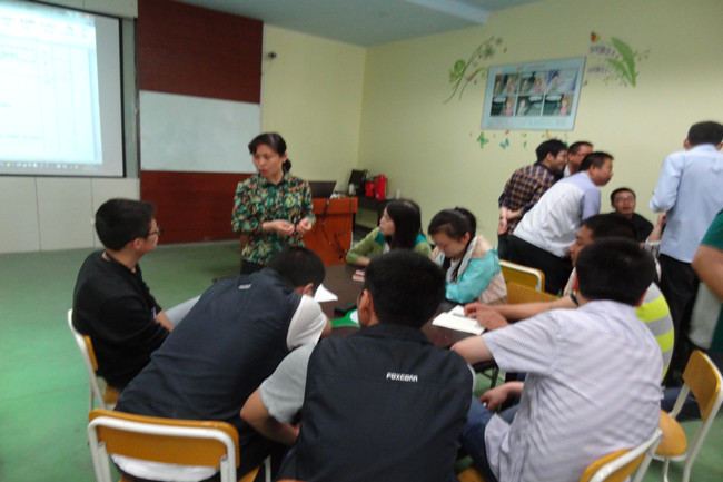 5月23日,工商管理学院沙盘模拟企业经营教学团队成员院长田青教授、副院长章尧东、教研室主任高明文成功地为富士康科技集团(淮安)72名课长进行了一天8个多小时的管理培训。