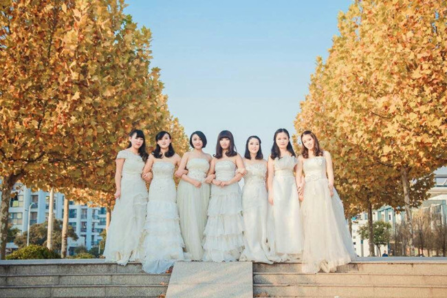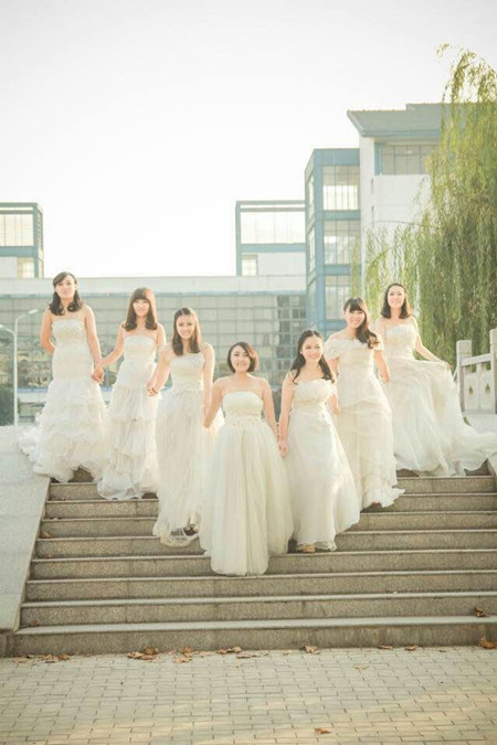 我们穿着婚纱,行走在校园,或彼此牵手,或嬉戏谈笑,曾经的那些点点滴滴又浮现在脑海。