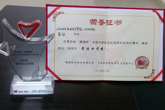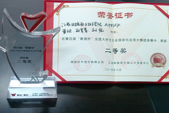 本次大赛由中华人民共和国工业和信息化部主办,中华人民共和国教育部指导,鼎捷软件股份有限公司承办,先期于2015年3月10日至4月25日举行了预赛,全国有96支代表队参加了预赛,我院代表队在预赛中表现突出,成功晋级决赛。决赛于6月3日至6月5日在上海举行,来自全国各本、专科院校的12支代表队参加了决赛。