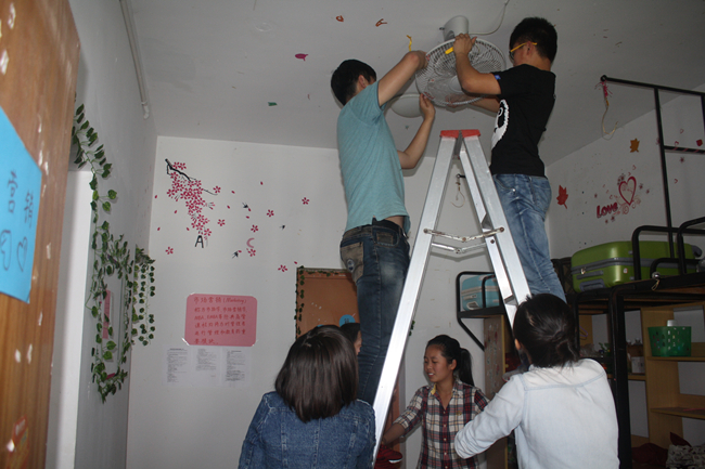 为了发扬党员先锋模范精神,倡导一种积极乐观的人生态度和健康的生活方式,使大学生们更加注意个人卫生和宿舍周边的环境卫生。6月8日中午12:50在经贸学生男女生宿舍举办“党员走访宿舍,帮助同学清洁风扇“的主题活动。