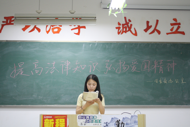 为了提升青少年学生的法治意识,打造青少年健康成长的良好法律环境,6月9日,学生会办公室在教室举办了以“提高法律意识,弘扬爱国精神”为主题的读书活动。