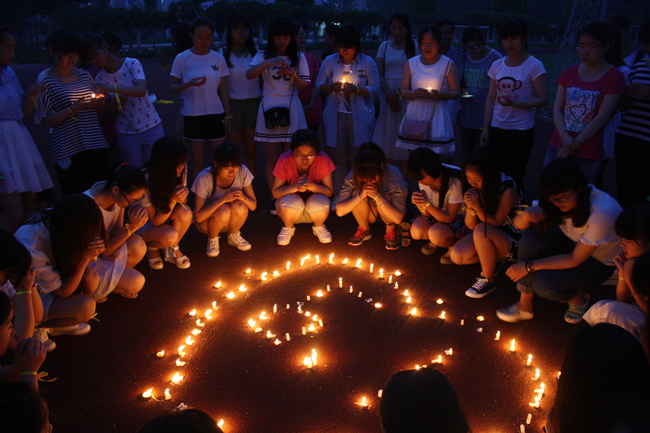一盏盏蜡烛被点亮,载着同学们诚挚的问候与祝福,飞向东方之星号游轮。“我们是一群可爱的大学生,我们想用我们最微薄的力量”希望东方之星号能像烛光那样在爱的包围中,重燃希望,再塑辉煌!(杨艳)