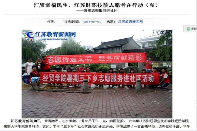 汇聚幸福民生,江苏财职技院志愿者在行动(图) - 高校动态 —江苏教育新闻网