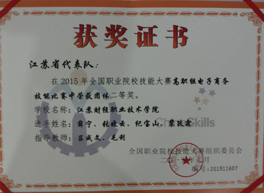 经济贸易学院高度重视电子商务技能赛项工作,由于参赛准备时间短,学院成立了以吕成文、毛利二位老师组成的指导教师训练团队,在全院鳞选了4位参赛同学,科学制订训练方案,领会比赛规则和要求,精心组织训练了一个月。训练期间,每一天训练结束后,指导教师与同学都及时进行总结,查找存在的不足,一起共同探寻技能提高的方法、途径与手段。精心的组织安排与训练,不仅使第一次参加全国职业院校技能大赛高职组“电子商务技能”赛项取得了优异成绩,而且还是江苏省三支代表队中唯一获奖代表队伍,为江苏省、为学校争得了荣誉!