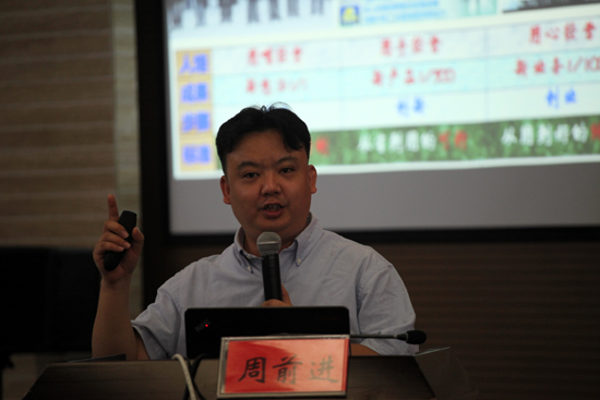 28日上午,北京用友新道科技有限公司副总裁周前进在研修班上作了题为《企业视角的创新创业人才培养》的报告。报告中,周总结合自身工作经历和企业实例,深入剖析和阐述了现代企业的人才需求情况以及企业需要高职院校如何培养人才等重要问题。他强调,企业最需要创新创业人才,这需要我们的教育“与时俱进、卧薪尝胆、尊重生命”。他在报告中还通过大量列举国内外优秀广告作品、历史故事等,指出企业升级发展需要学校教育从资源、效率、创新驱动方面增强学生的自主创造、创新、创业能力,着力培养学生的团队动手和动能技能。