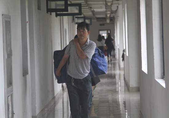 家长搬行李进宿舍