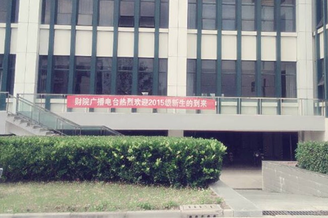 广播电台的小伙伴们采取多种方式,给新生送上美好的祝福和问候。上午,我们通过广播的方式传递出祝福:财院广播电视台。财院广播电台,欢迎2015届新生的到来!在青春飞扬的日子里,坚守住最初的梦想,把握今天,憧憬未来。此外,我们还在图书馆门口拉起了一条条崭新亮丽的横幅。美丽如画的校园里,婉转的校歌回荡在新生的耳边,动人的旋律阐述着我们学院的精神风貌,展现着学院与众不同的风采。中午时分,财院广播电台送出了温馨的提示:财院广播电台温馨提示:各位家长,同学,经过一路的劳累,欢迎来到江苏财经职业技术学院,现在是就餐时间,希望您就餐愉快!