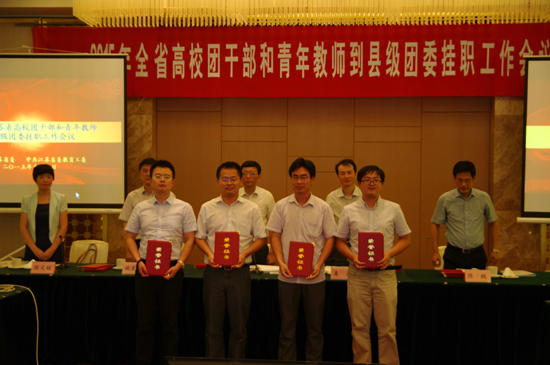 9月9日,江苏省高校团干部到县级团委挂职工作会议在南京召开,我校选派的挂职团干部刘嵘老师从江苏省教育工委副书记潘漫手中接过“挂职工作先进个人”荣誉证书,并代表全省2014年度挂职干部,以《融入基层作贡献 青春聚力勇担当》为主题作大会典型交流发言,台下响起热烈的掌声。